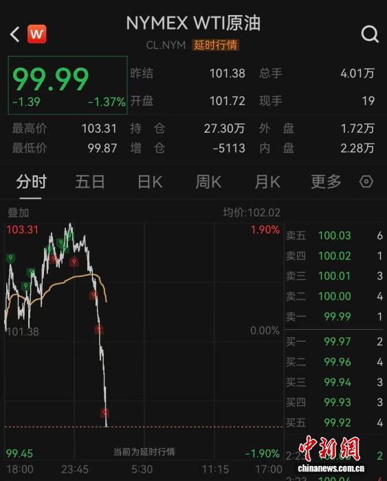 今日邦际油价俄然跳火,WTI本油沦亡100美圆/桶,布伦特本油1度失手101美圆/桶。(完)